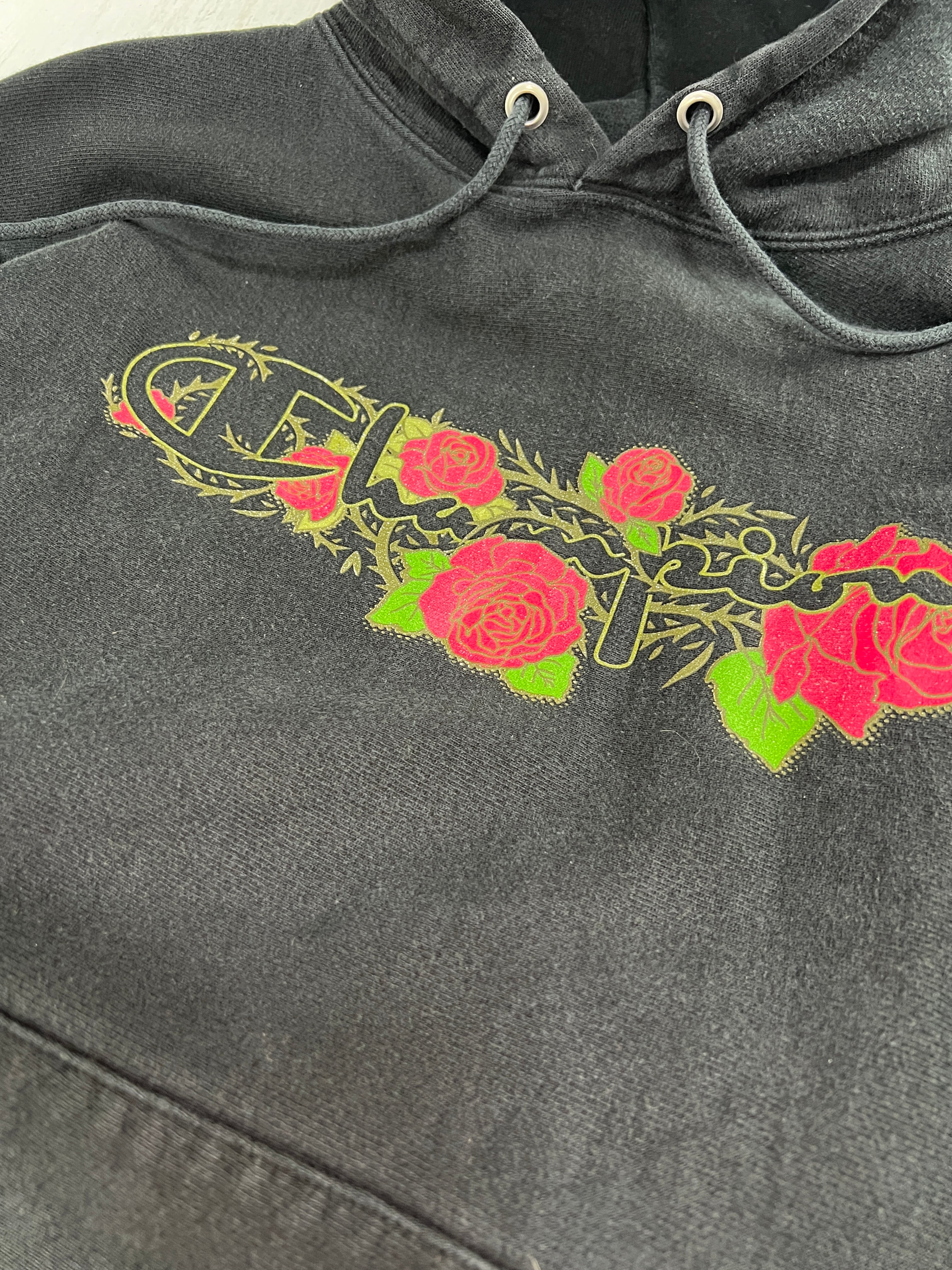 フロントと袖に施されたローズ(バラ)プリントが印象的な一着。